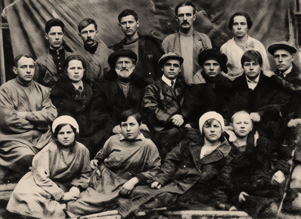 На снимке: работники Белохолуницкого райиздательства (слева направо) первый ряд - наборщицы Евгения Александровна Лямина, Вера Федоровна Корчемкина и Надежда Александровна Ляпунова, печатник Петр Дмитриевич Лямин; второй ряд - наборщик Георгий Данилович Готлиб, корректор Валентина Константиновна Анфилатова, наборщик Алексей Алексеевич Блинов, заместитель редактора Владимир Иванович Зонов, зав. сельхозотделом Валентин Михайлович Черезов, наборщица Августа Николаевна Лимонова, зав. промотделом Николай Григорьевич Куфтырев; третий ряд - печатники Александр Алексеевич Красных и Аркадий Гаврилович Вершинин, бухгалтер Алексей Васильевич Козлов, бухгалтер райфо Александр Петрович Ляпунов и техслужащая Агриппина Дмитриевна Зырянова.